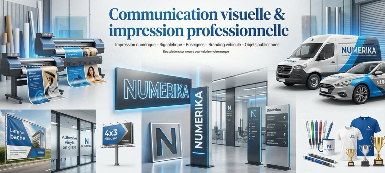 Fondée en 2008, NUMERIKA est aujourd’hui reconnue comme un acteur de référence enimpression et communication visuelle en Afrique de l’Ouest. Forte de plus de 45 ans d’expertise cumulée, l’entreprise combine une connaissance approfondie des métiers, techniques et supports avec une capacité constante à innover et à anticiper les tendances.