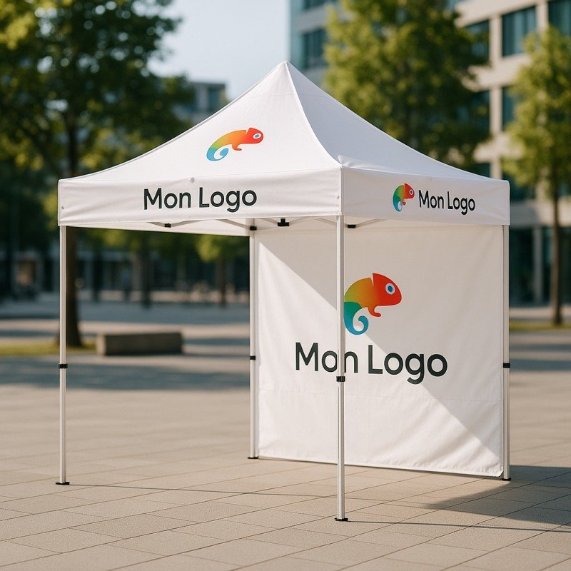 La tente en sublimation est un support de communication idéal pour vos événements, foires et actions promotionnelles en extérieur. Elle assure une forte visibilité de votre marque tout en offrant un espace pratique et attractif. Elle garantit une impression de haute qualité avec des couleurs vives et durables, parfaitement intégrées au tissu pour un rendu professionnel et impactant, même en usage extérieur.